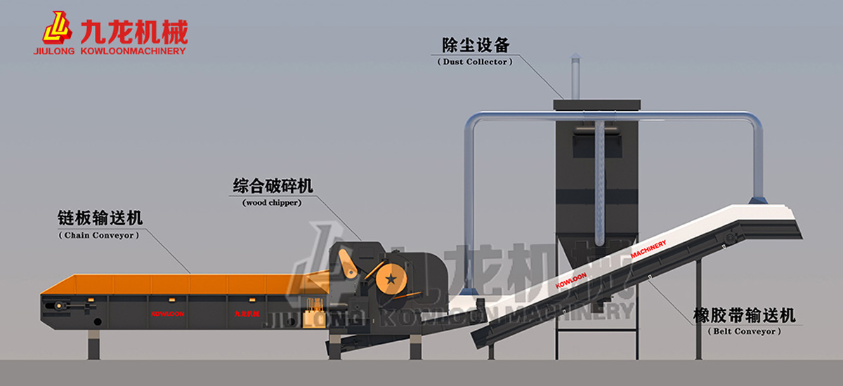 綜合破碎機設備采用抓機喂料,可以破碎模板、木托盤、木箱、樹枝等各類廢舊木材,設備采用鏈板式智能進料。可根據主電機負荷自動調節進料速度。使機器滿負荷運轉避免空載運行,使進料更加順暢,大幅度提高生產能力。進料平臺較高,可采用抓機喂料(省人工),也可以根據用戶需求在安裝時把設備放入地坑進行平推進料,這樣就大大節省了人工成本。